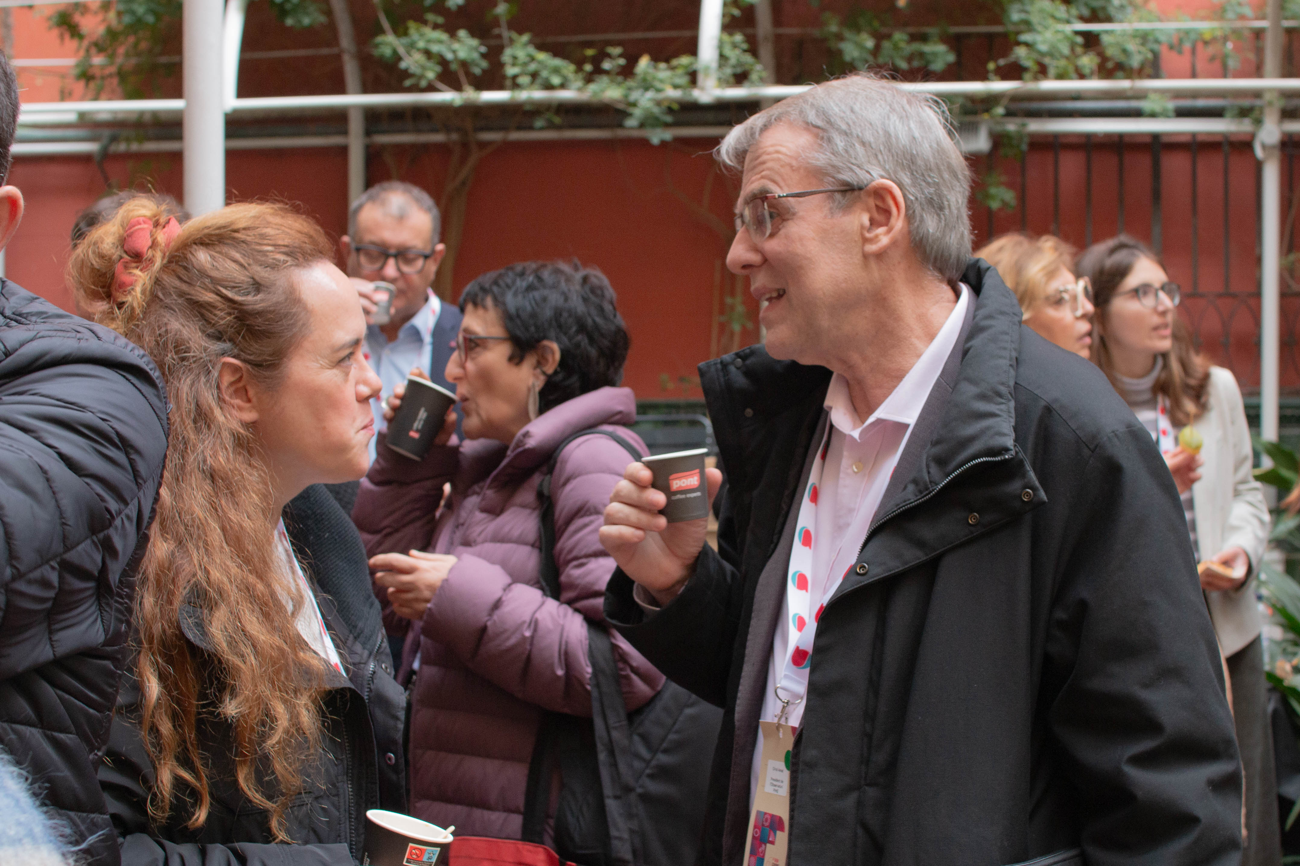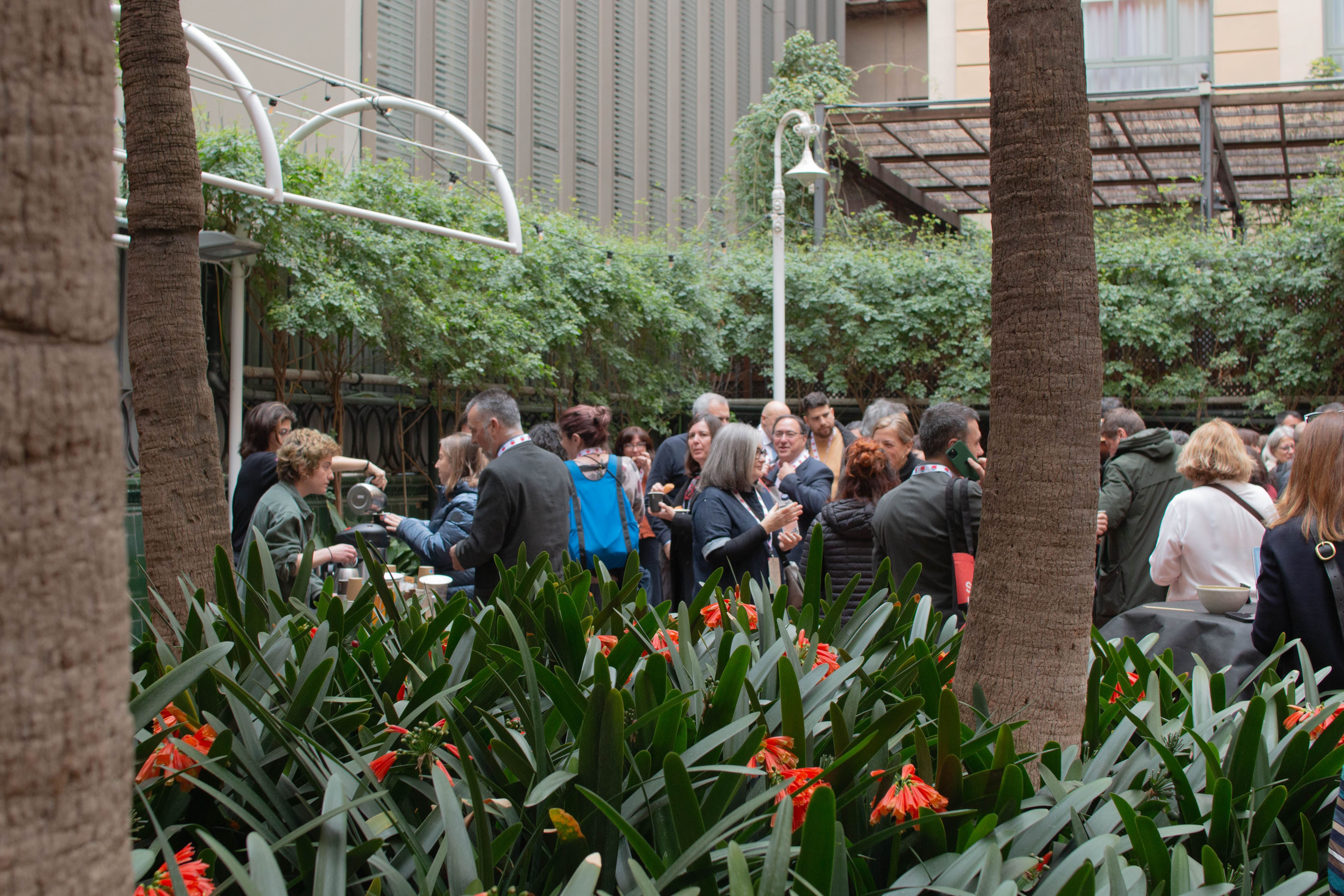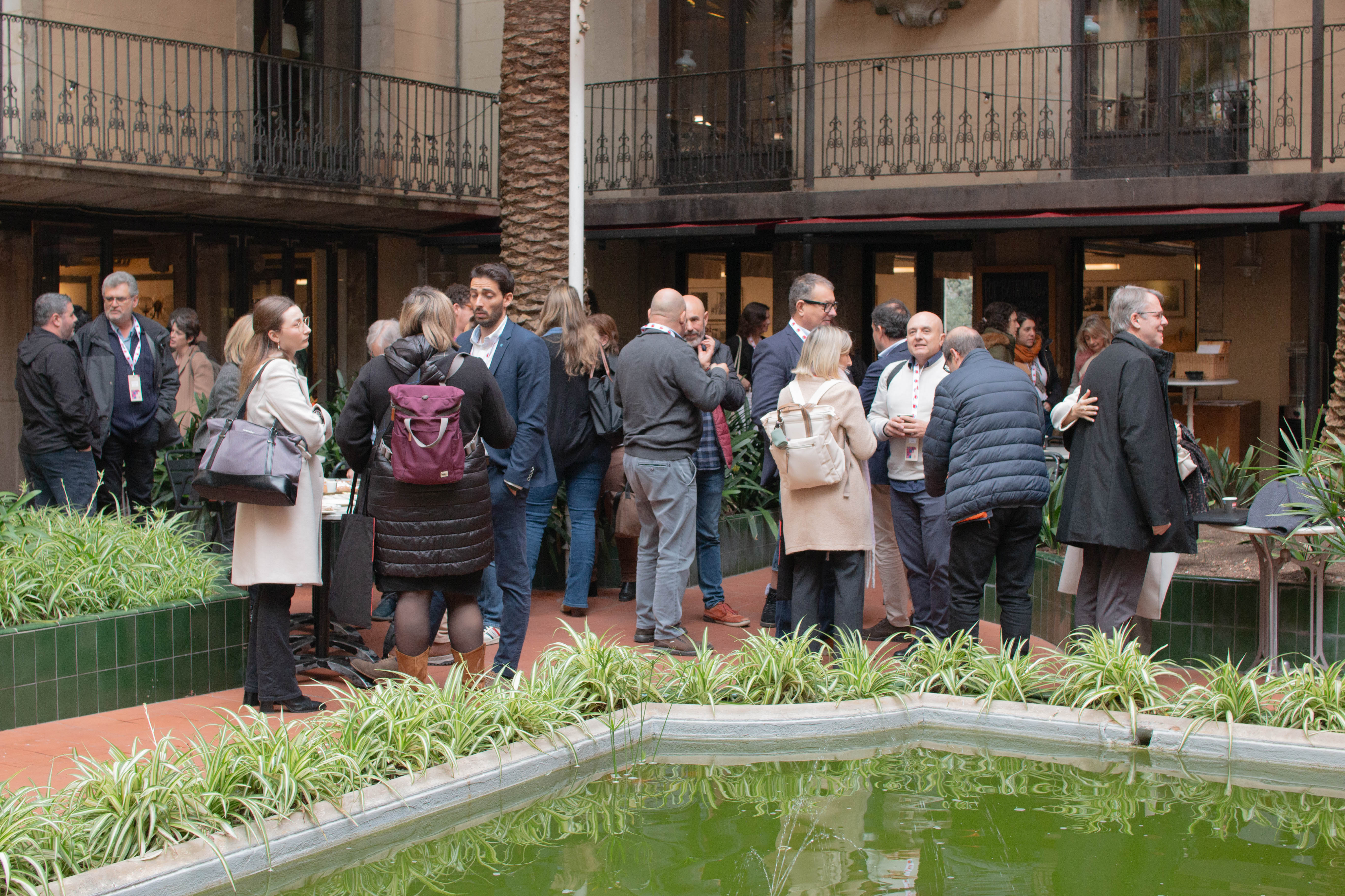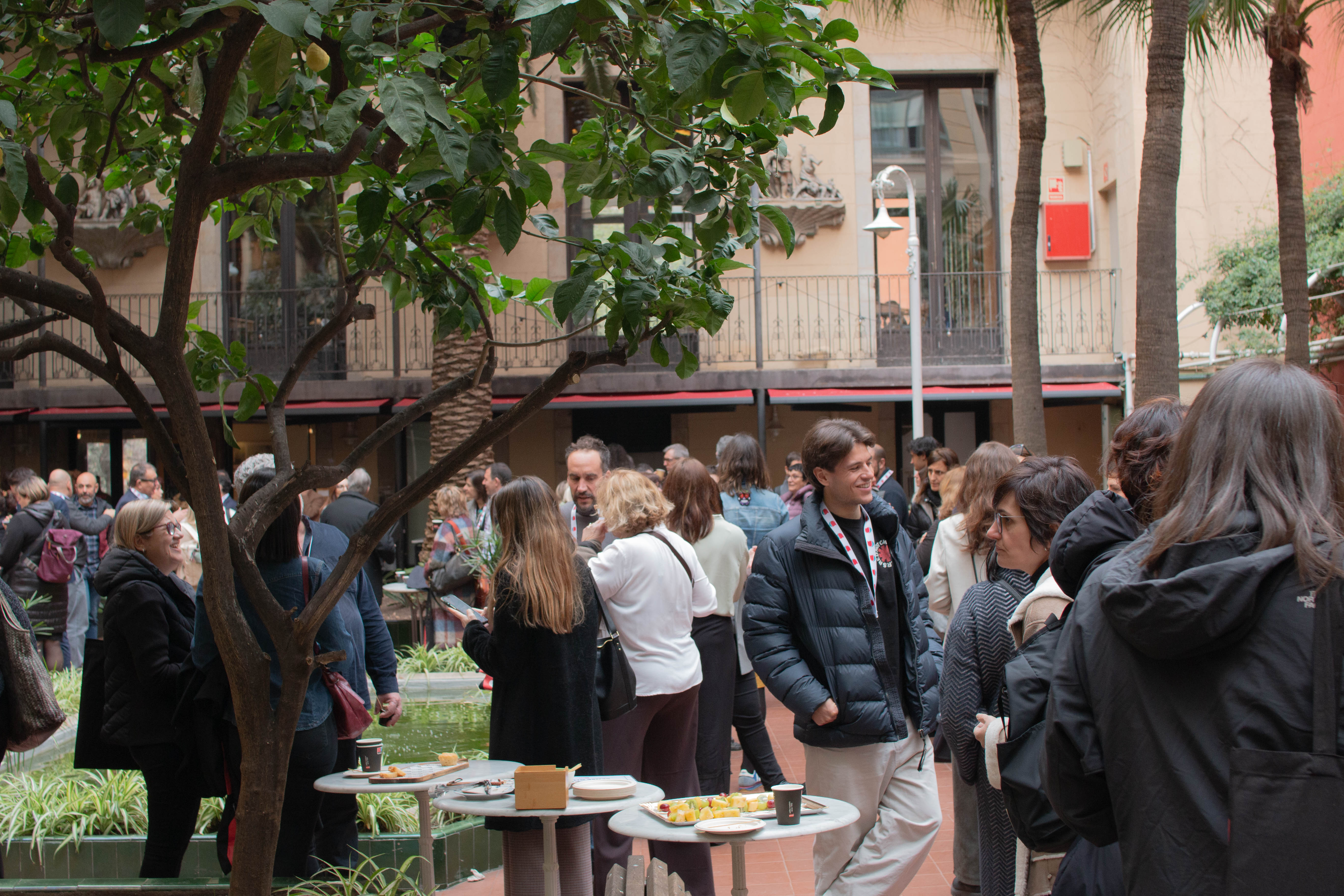 Després de la ponència d'Oriol Amat vam oferir un refriegeri al magnífic Jardí de l'Ateneu, un espai privilegiat al mig de la ciutat, oasi de tranquil·litat i especialment adequat per a la conversa distesa. S'hi van realitzar contactes, noves coneixences, intercanvi d'agendes i, amb tota seguretat, primeres connexions per a futurs acords de col·laboració.