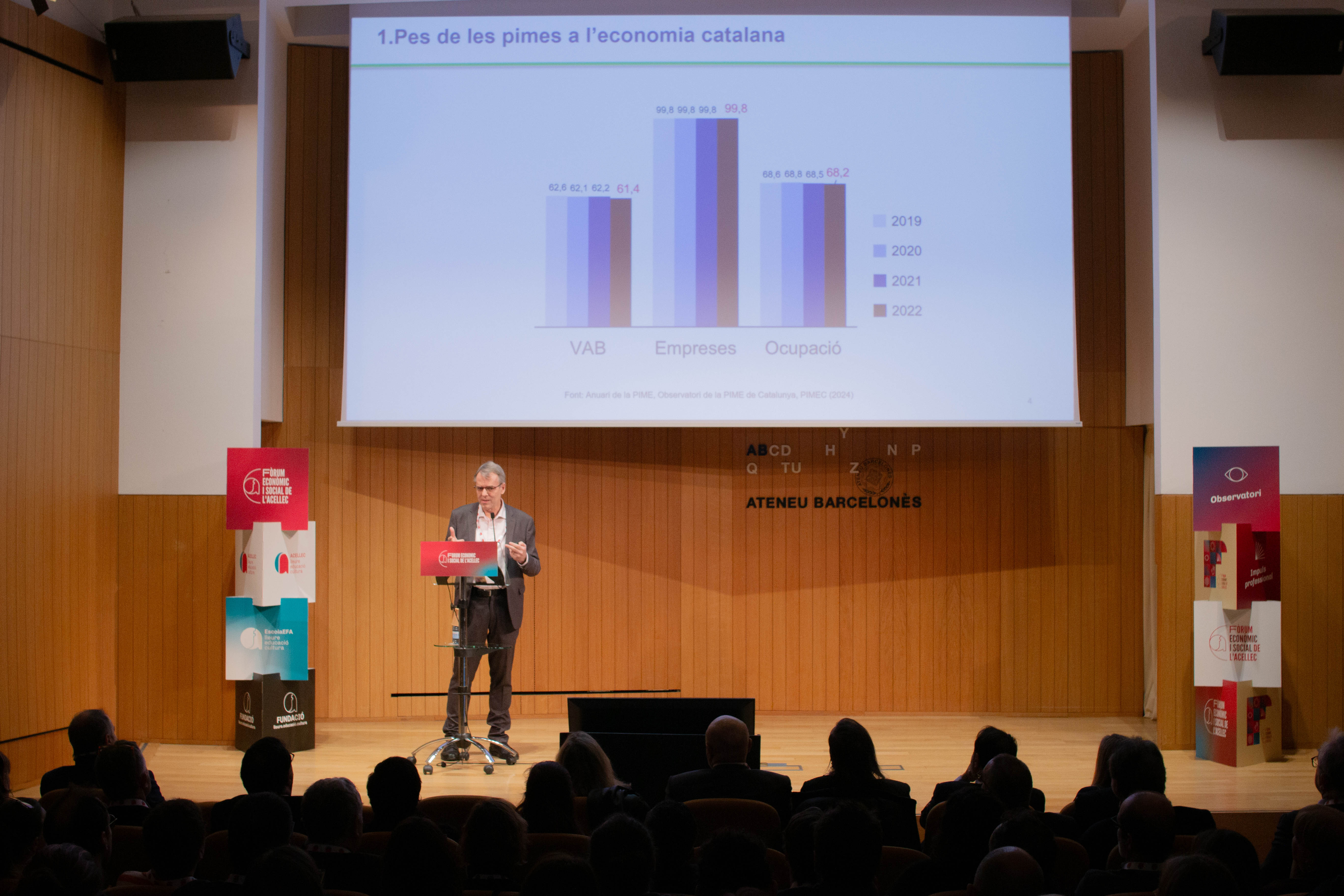 Li vam demanar que expliqués amb dades concretes quin és el pes de la petita i la mitjana empresa en el conjunt de l'economia catalana i que ens donés les claus d'èxit d'aquest model d'organització. La seva intervenció va passar de la presentació de models generals a la concreció en el nostre sector d'activitat, constituït essencialment per emprenedors que al llarg dels anys han consolidat les seves organitzacions amb un model empresarial centrat en la pime que especialitza l'activitat en l'atenció a les persones. El dinamisme i la demanda creixent de servei en aquest àmbit permet, a més, que els projectes de nova emprenedoria en el nostre sector apareguin de manera continuada, gràcies en part a trobar un model en el qual es poden emmirallar.